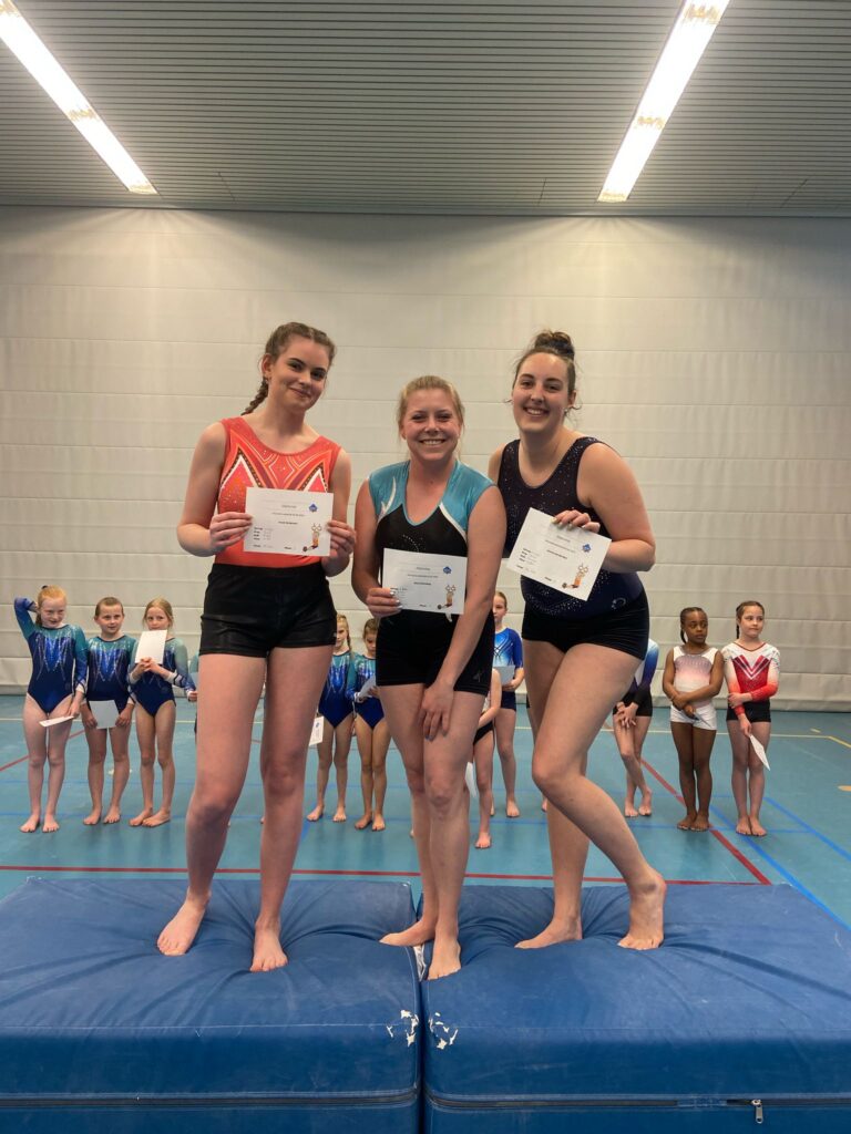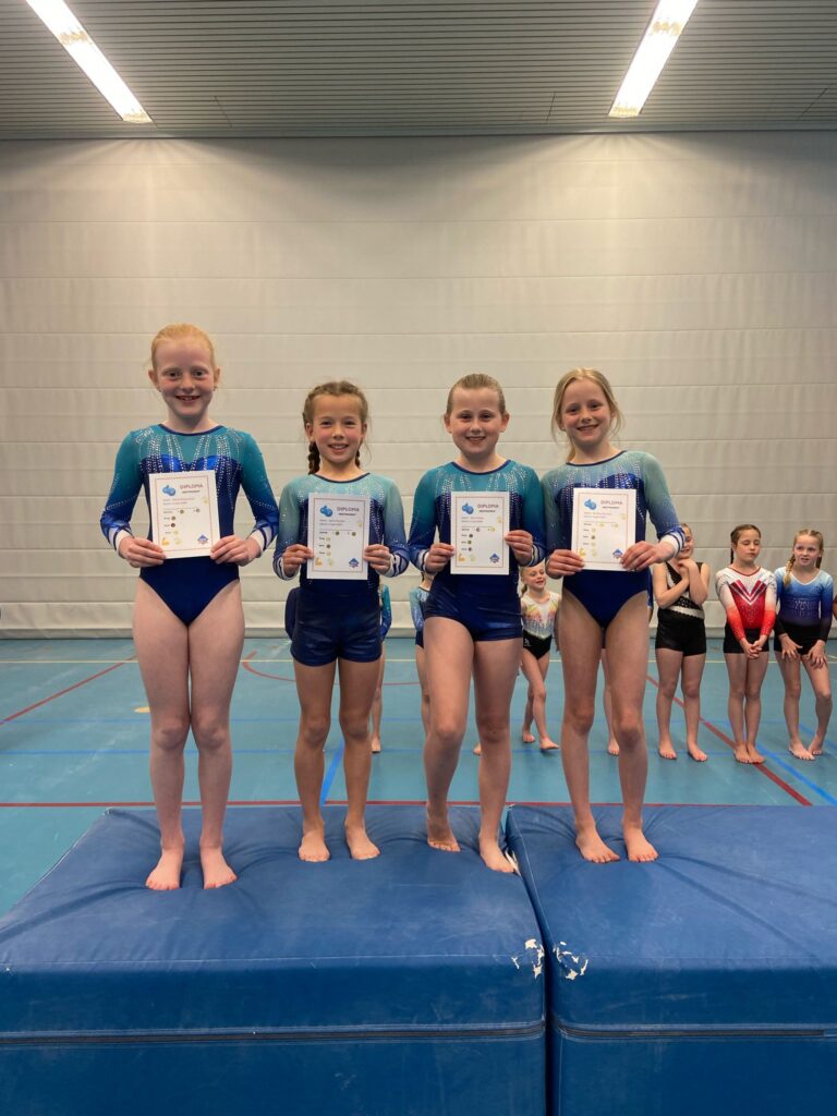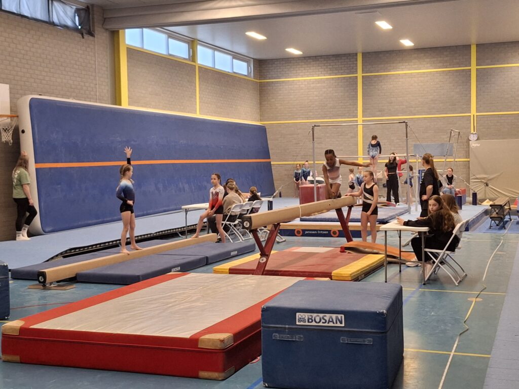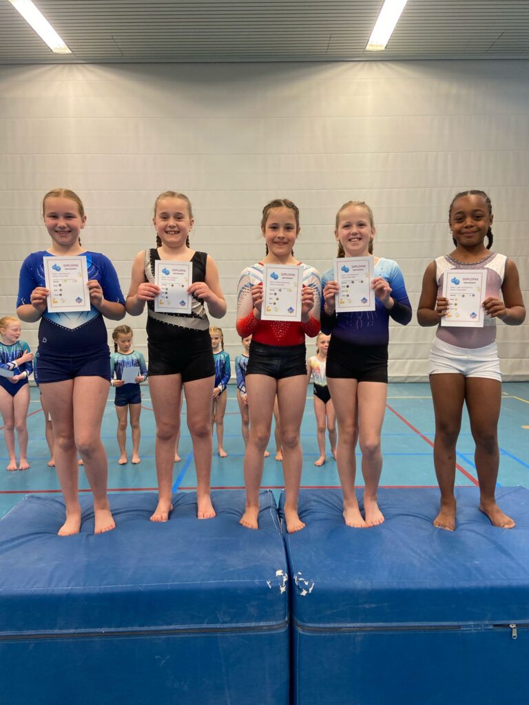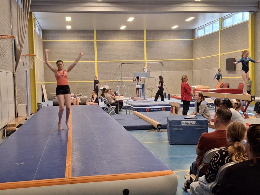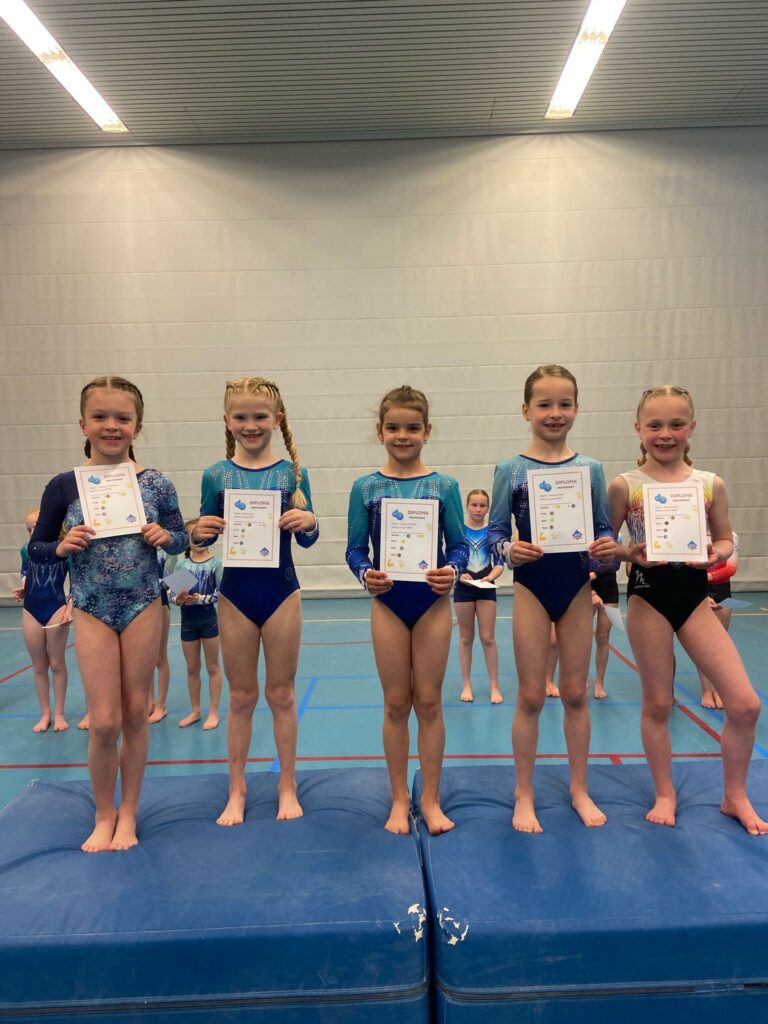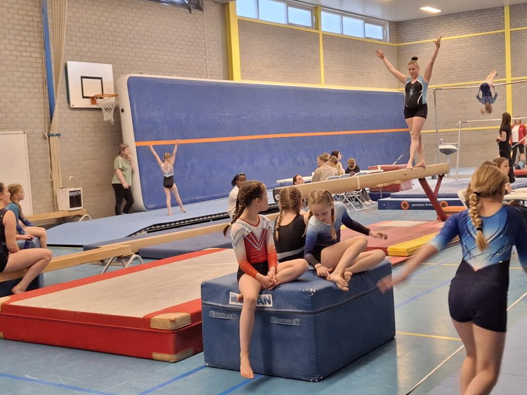 Vandaag, 5 april was het tweede meetmoment voor onze onderbouw turnsters uit de A- en B-selectie. Uit de A-selectie waren dit Bo Elise Bunders, Yune Teiwes, Elive Molenbeek, Jayliën de Baar, Danae Kok, Faye Timmer, Eva van Beek, Nena Geutjes en Mylana Holleman. Vanuit de B-selectie Noor Onstenk, Myrthe Valkenburg, Jada van Ommeren, Ivey Widemann en Sue Goldbach. Aanvullend t.o.v. de vorige keer was dat er drie volwassen turnsters vanuit de recreatiegroep (woensdagavond) ook hun oefeningen lieten zien aan het publiek. Dit waren Tamara Helwig, Naomi Punt en Cècile Kosterman.