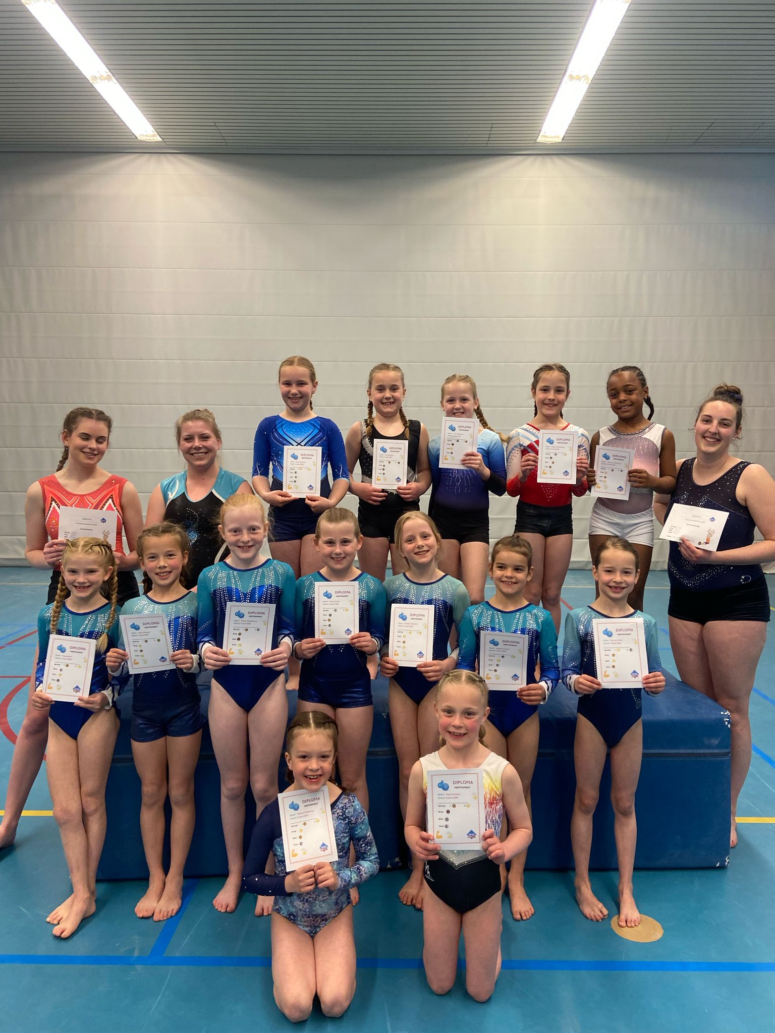 Vandaag, 5 april was het tweede meetmoment voor onze onderbouw turnsters uit de A- en B-selectie. Uit de A-selectie waren dit Bo Elise Bunders, Yune Teiwes, Elive Molenbeek, Jayliën de Baar, Danae Kok, Faye Timmer, Eva van Beek, Nena Geutjes en Mylana Holleman. Vanuit de B-selectie Noor Onstenk, Myrthe Valkenburg, Jada van Ommeren, Ivey Widemann en Sue Goldbach. Aanvullend t.o.v. de vorige keer was dat er drie volwassen turnsters vanuit de recreatiegroep (woensdagavond) ook hun oefeningen lieten zien aan het publiek. Dit waren Tamara Helwig, Naomi Punt en Cècile Kosterman.