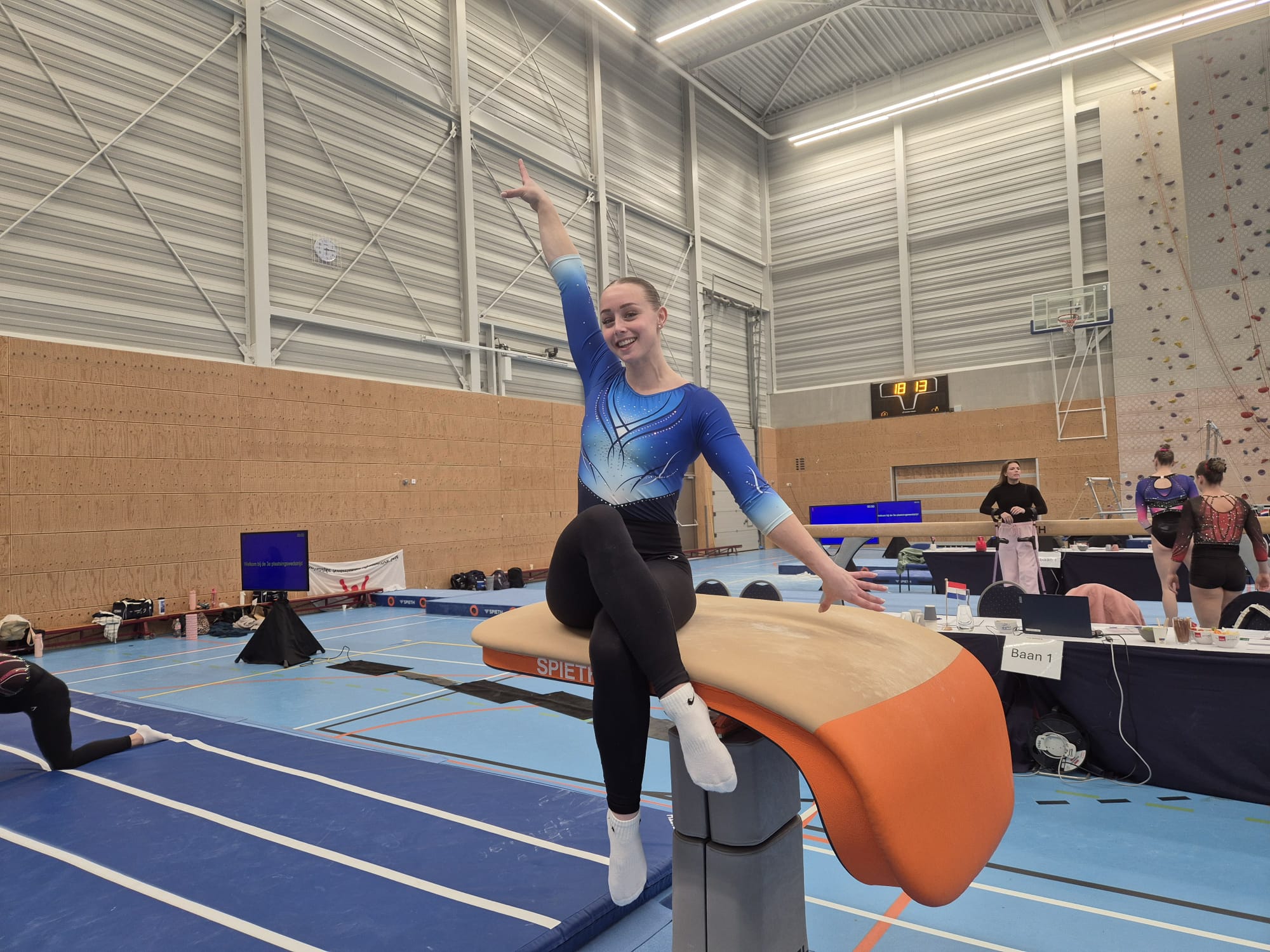 Het was al na half 7 in de avond dat Sanne eindelijk aan haar wedstrijd mocht beginnen bij de senioren 1e divisie. Starten op sprong en haar tsjuki hoek was goed voor 12,100 punten. Brug was wel spannend, pas de tweede keer dit seizoen (ook niet gedaan bij teamwedstrijden) maar met een uitvoering van 8,267 en een eindscore van 10,667 was het een goede oefening. Op balk ging bij het inturnen de combi salto salto goed maar tijdens de wedstrijd zette ze scheef in waardoor ze met de eerste salto al viel. Helaas maar toch nog een 10,100. Tot slot de vloer op en met haar 12,833 de op een na beste score. In het eindklassement werd Sanne 7e en ook haar zien we terug in Vianen voor de halve finale (zondag 29 maart).