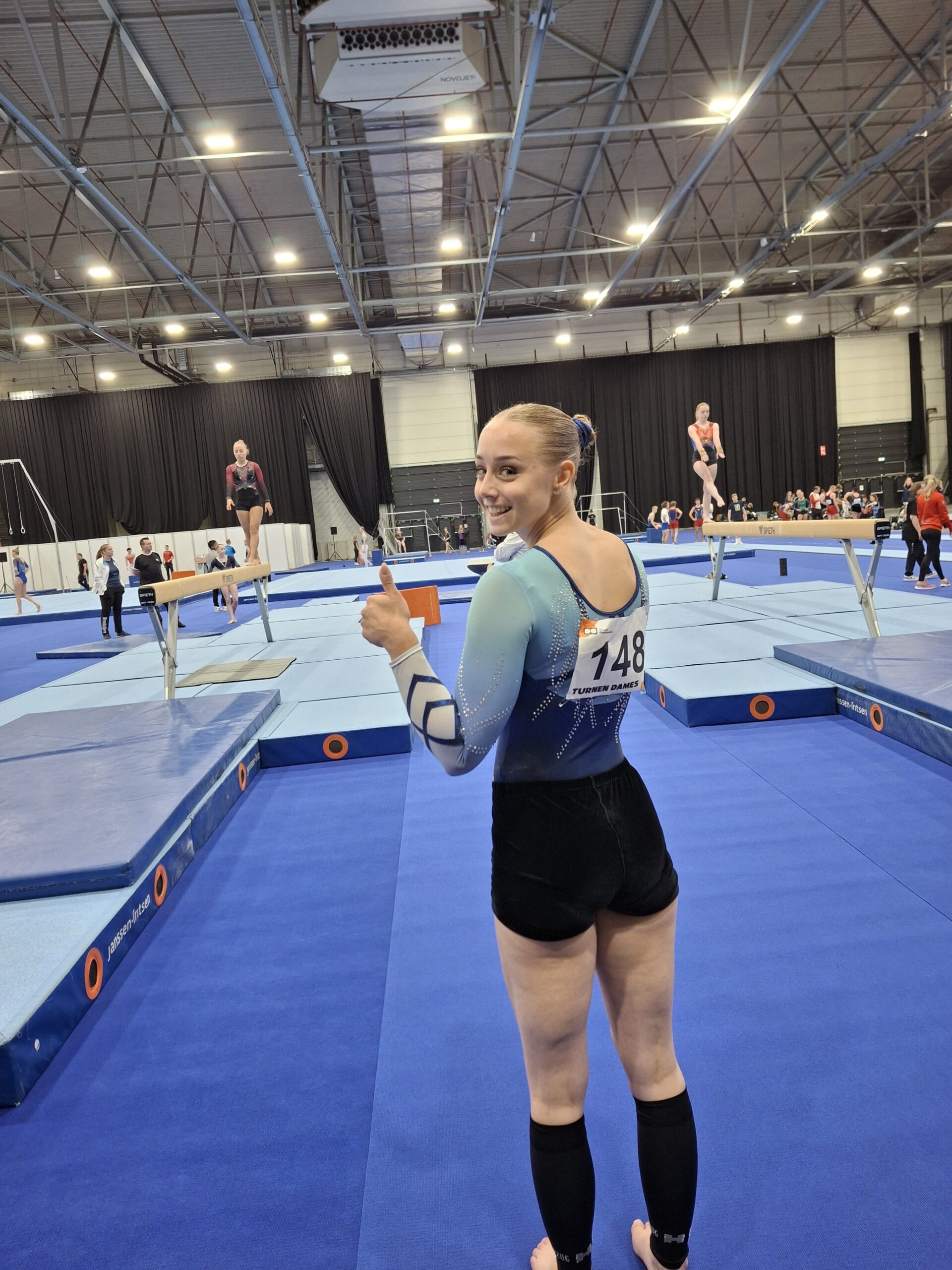 Liese Ahoy-cup D met jeugd en junioren turnsters die het gehele seizoen in supplement D hebben geturnd; Sanne in Ahoy-cup A met junioren, senioren 1e divisie en senioren 2e divisie op basis van supplement A. Voor Liese de eerste keer in Ahoy en wat een fantastische ervaring is dat.