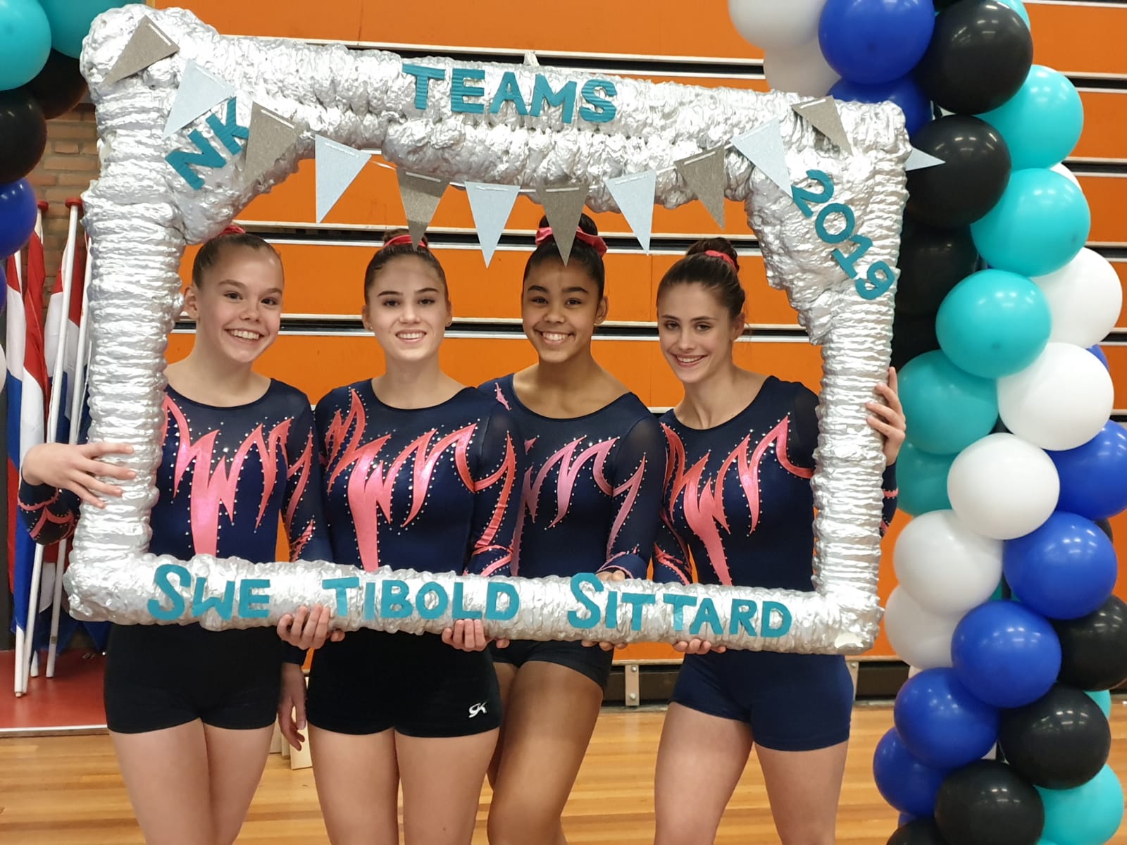 Noa, Pleun, Robin en Famke zaten dus al vroeg in de auto op weg naar Sittard samen met Miranda en Les. Deze groep start op vloer gezien hun 4e plek tijdens de kwalificatie. Pleun moest even wachten omdat de muziek het niet deed maar uiteindelijk kon ze toch beginnen en zette 10,400 punten neer. Robin en Famke turnden prima oefeningen wat 10,750 en 11,350 punten opleverden. Bij een finale tellen alle drie de scores. Bij sprong ging het ook naar behoren met ruime 11 punten voor Robin, Pleun en Noa.