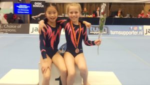 Wie we ook terug zien in de halve finales zijn Suzanne en Ben Hui. Voor Suzanne haar 1e landelijke wedstrijd en we begrijpen dan ook dat ze zenuwachtig was. Ben Hui had geen fijne voorbereiding door een enkelblessure en griep maar turnde toch boven verwachting. Alleen val met flik flak van de balk maar verder een uitstekende wedstrijd. 5e bij de pupil 2, N2. Suzanne maakte geen enkele fout. Turnde een zeer goede rekoefening met de hoogste score maar was op vloer wat slordig. Daarop valt nog meer winst te behalen. Toch werd deze instapper N2 derde en kreeg zij de bronzen medaille met een roos. Gefeliciteerd!