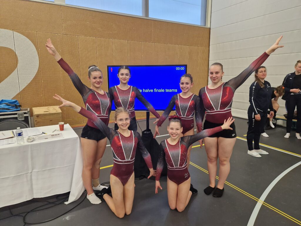 Het weekend werd op zondag afgesloten met het hoogste niveau, supplement A. Sanne Oost, normaal niveau B doet dit seizoen mee met het team Turn4U in dit hoge niveau. Slechts 5 teams doen dit seizoen mee in dit niveau waardoor alle teams zich kwalificeren voor de halve- én de finale. Het doel is dus om zoveel mogelijk rankingpunten binnen te halen voor de seizoensprijzen. Sanne beet het spits af op balk en zette direct een 11,700 neer. Ook op vloer een hoge score 12,500 en zij eindigde haar wedstrijd op brug met een 10,650. Het team werd 4e en zien we zaterdag terug in de finale in Waalwijk.