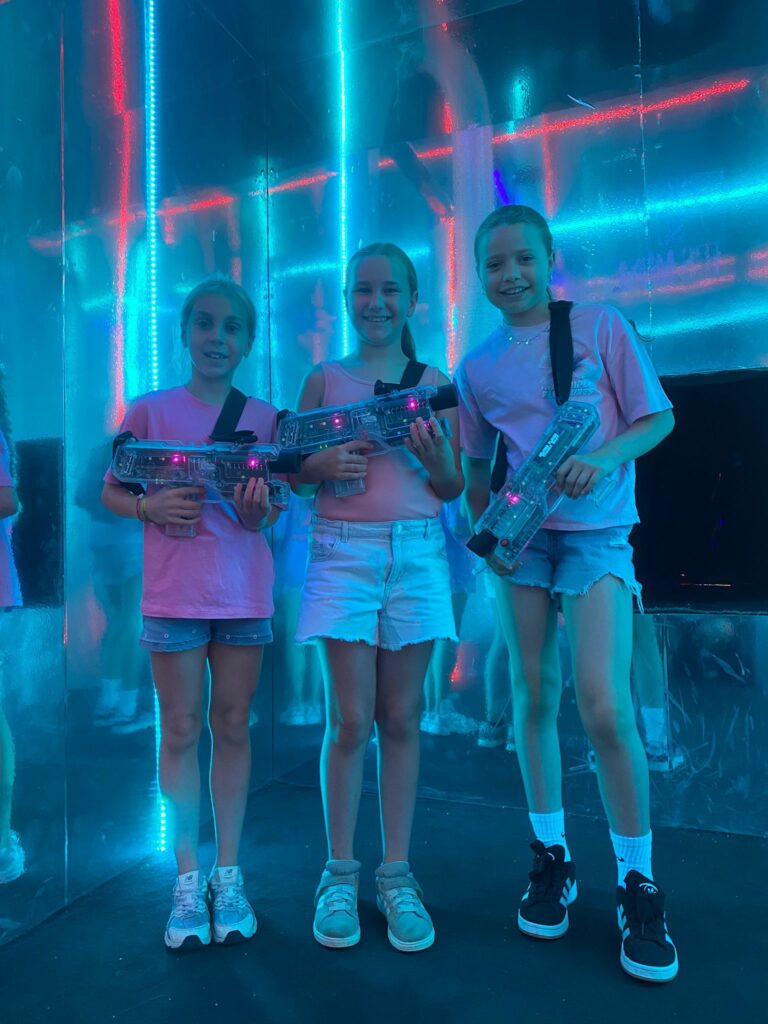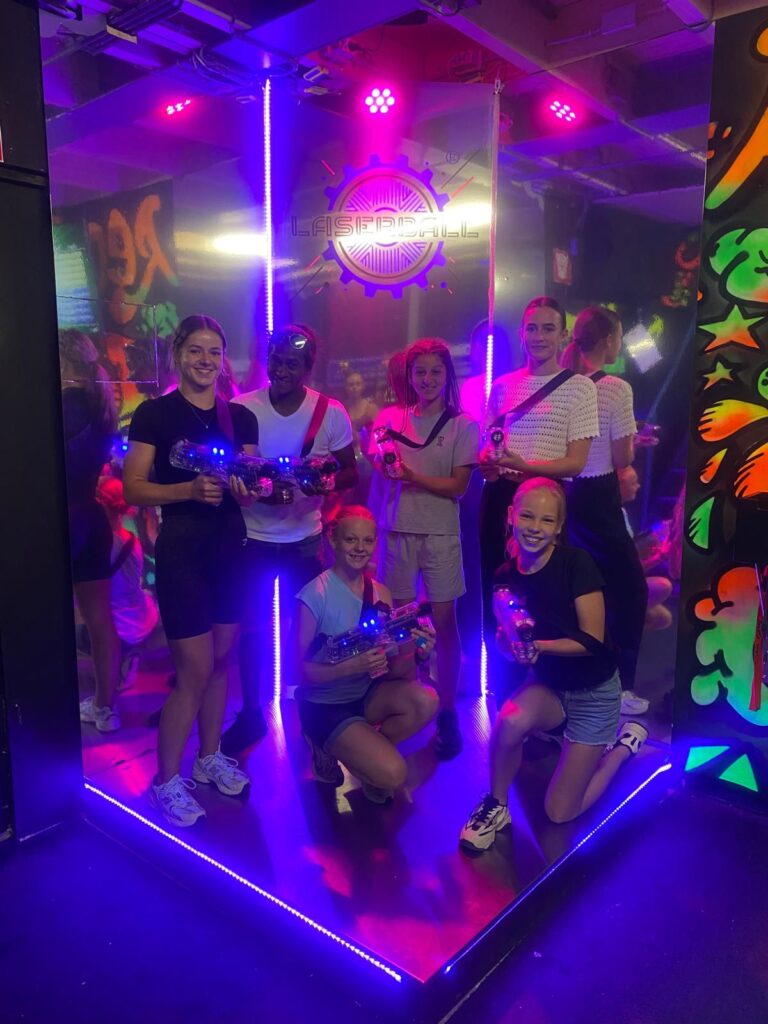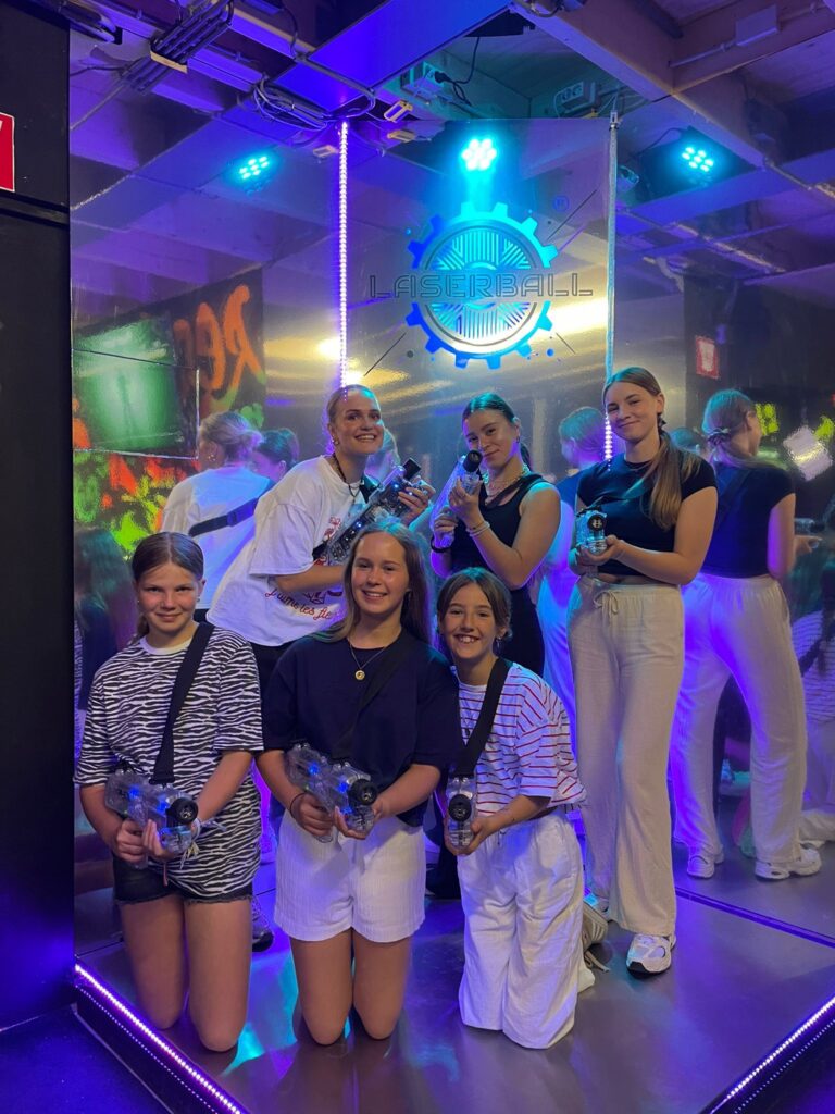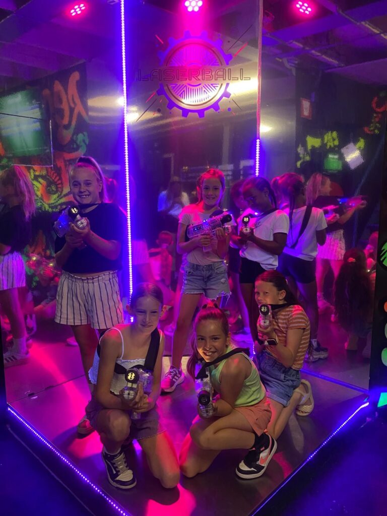 Traditiegetrouw wordt tegen het einde van het seizoen een gezellig uitje georganiseerd voor de B-selectie ´klein´ en ´groot´. Dit jaar had trainster Sanne alles op één locatie geregeld. Fabriek Woerden! Zondagmiddag 22 juni mochten de turnsters van ´klein´ om 12.00 uur aftrappen met lasergamen. Tussendoor, als men even niet aan de beurt was, kon er geknutseld worden of met elkaar tafelvoetbalspel gespeeld worden. Het was warm dus een drankje na afloop was wel op zijn plaats en ook kregen de meiden een lekkere snack.