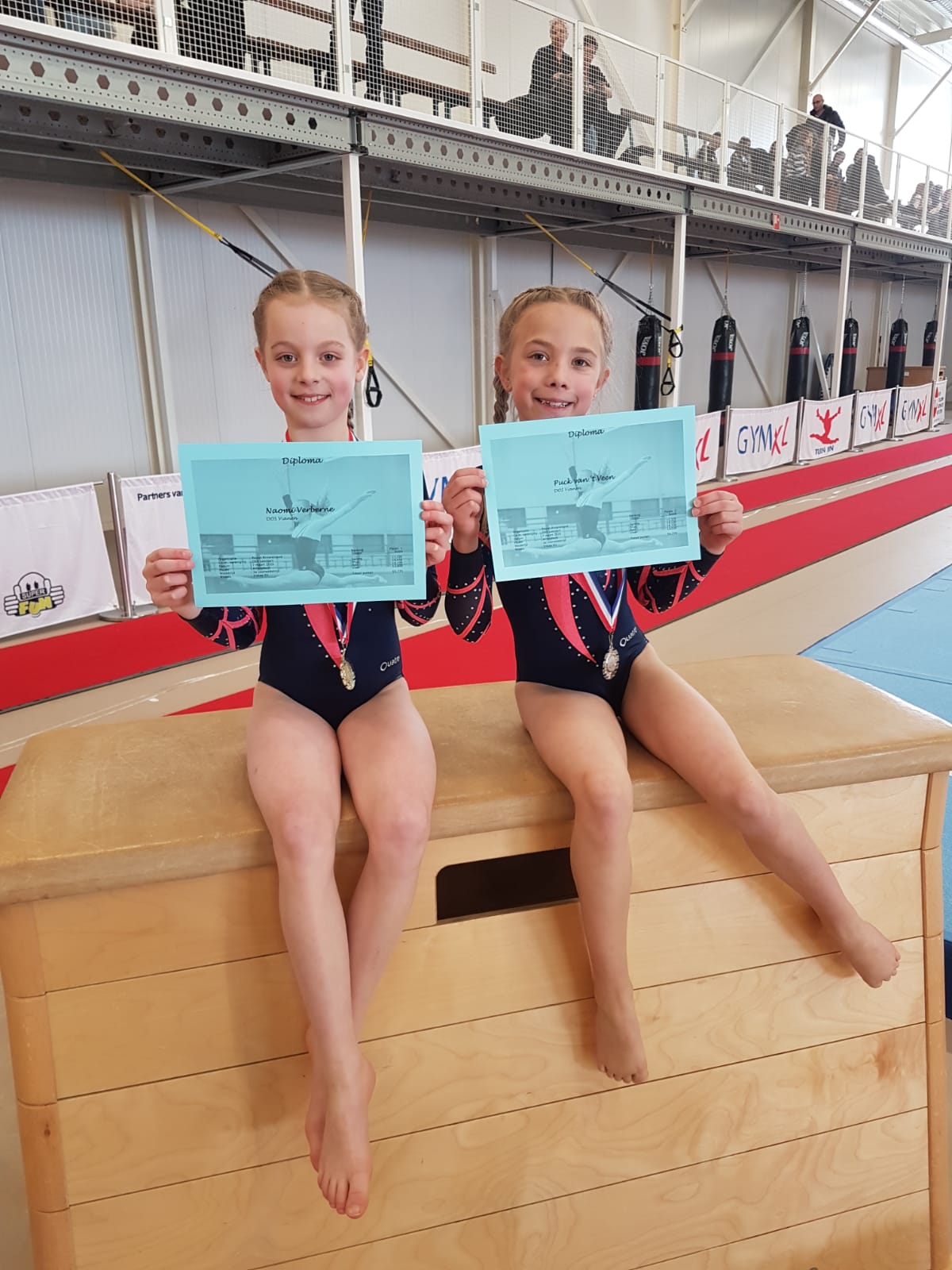 Voor de jonge turnsters Naomi en Puck was het allemaal spannend zo’n eerste wedstrijd in de grote zaal in Amersfoort maar ze deden het fantastisch. Puck hield helaas de kurbet iets tekort aan maar verder ging het zeer goed. Naomi pakte het goud en Puck het zilver. Op 28 maart a.s. turnen zij hun 2e wedstrijd maar kwalificatie voor de regiofinale is ook al een feit. Goed gedaan hoor!