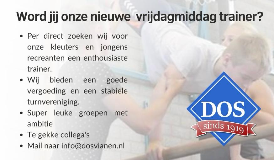 Lijkt het je leuk om met de groep(en) te werken, heb je affinititeit met kinderen en de gymsport? Mail dan naar info@dosvianen.nl.